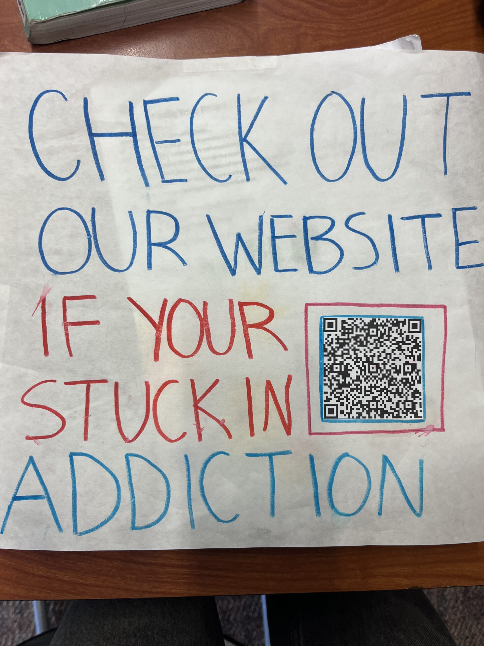 Determined to make a meaningful impact, they created a website called Rise Above Addiction, providing information on drug abuse prevention and access to support services. Posters with QR codes linking directly to the website were hung in the hallway. They partnered with the school’s drug and alcohol counselor and designed business cards with her contact information. These cards, strategically placed in campus restrooms, offered students quick and discreet access to valuable resources.